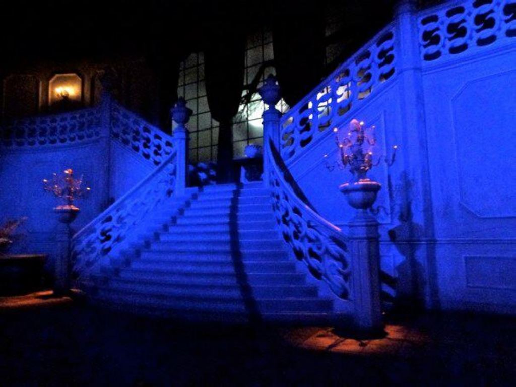 Many spirits seated around a small tea table filled with decayed food and broken china. Three drunken ghosts swing on the grand chandelier with a glass of champagne in their hands, as wraiths fly in and out of the grand bay windows. Six spectral couples in vintage evening attire hover 3 feet from the dance floor provided by music from a phantom pianist.
